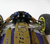 Из стандартных деталей были выбраны амортизаторы с лазера и диффы со спарохоука (тайгеровские). + была разработана изготовлена и доведена до ума принципиальная система замены центрального дифа. В машине две независимые силовые установки! У каждой есть свой настраиваемый слиппер. Учитывая размеры и эксплуатационно-технические особенности, были выбраны авиационные 12-полюсные моторы, обладающие потрясающим крутящим моментом в 1,7 кг! -> это позволило отказаться от первой ступени редуктора (спуры и пинионы).