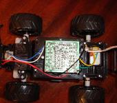 1-й вариант реализован именно так как я описал? Вы взяли серву, выкинули из нее мозги (двигатель в серве остался) и два Ваших провода (которые шли к штатному двигателю) подпаяли к двум контактам мотора установленной сервы?.. три банки - конечно, маловато, но должно было работать все-равно лучше, чем изначально на Вашей игрушке сделано… в серве передаточное отношение больше.