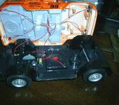 Я использовал только кузов от большой игрушки РУ, стоило 1500рб вся машинка …