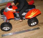 Всем привет ! Лежит в кладовке, по дальше от сына , вот такая игрушка. Куплена в секонд хенде примерно за 5 баксов. Пульта к ней не было , но моделька работает . Сломан руль и левая подножка (легко отремонтировать) . К квадроциклу очень подходит ACTION MAN. Масштаб примерно 1:6.