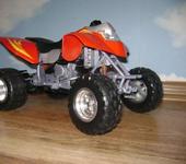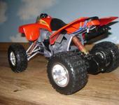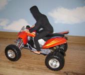 Всем привет ! Лежит в кладовке, по дальше от сына , вот такая игрушка. Куплена в секонд хенде примерно за 5 баксов. Пульта к ней не было , но моделька работает . Сломан руль и левая подножка (легко отремонтировать) . К квадроциклу очень подходит ACTION MAN. Масштаб примерно 1:6.