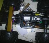 Вчера, гонял по дому на этом монстре, питал липолькой 7.4 вольта. мотор нагрел до 70 градусов. не выдержал поворотный механизм срезало зубья на шестернях. сломалось крепление заднего моста. Машина на пружинах скачет как мячик. управляемость очень плохая на маленькой скорости недостаточная, на большой избыточная. Вскрыл расчленил снял дискретную аппаратуру, и начал прикидывать дальнейшую компоновку. сделал новый передний мост из текстолита, поставил более прочные тяги и шаровые наконечники. необходимо закрепить серву и тяги подвески и амортизаторы. Чует мое сердце, от игрушки останутся лишь задний редуктор колеса и кузов . внутренняя рама не годится ни для чего . слишком тесная и хрупкая.