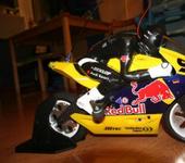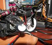 Первоначально я поставил колеса от вертолета Д25 Н=14мм. Но уменьшился радиус поворота мотоцикла, поскольку оказалось, что вспененная резина - цепкая штука и мото въезжал в поворот на трех колесах, два из которых не поворачивались, плюс опять-же колесика хватало на 2 часа езды. В итоге заменил такими-же колесами, только точеными из фторопласта, разница стала заметна в маневренности сразу, да и по долговечности… катал пять раз, колеса почти как новые.