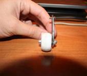Прикручиваем к трапеции полуось на которую будет крепиться колесико и само колесико.