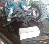 Вобще решил в данный аппарат не вкладываться, ограничусь пока только батареей, т.к. на штатной ездит минут 10 всего, маловато. Надоело уже пять минут кататься и потом несколько часов точить детали подвески из фторопласта. Передняя подвеска вобще ни в звезду… Пара-тройка небольших прыжков на грунтовке (реально небольших) и при очередном приземлении одно из передних колес уже едет отдельно от машины, причем прихватив с собой привод, рулевую тягу… ну или просто встает домиком вырвав бронзовые втулки из повортного кулака куда закреплен винтами шкворень.