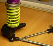 Вот как то так. Соответственно форма нижнего рычага должна быть чуть другая, как у 8ки 1:1. Думаю, это не проблема сделать из шпилек М3 или длинных болтов М3. В данном случае поворотный кулак от HPI Sprint 2, аморт любой 10 масштаба. Нижняя шаровая использована от этого же амортизатора. Можно использовать стандартные шаровые наконечники от шоссеек.