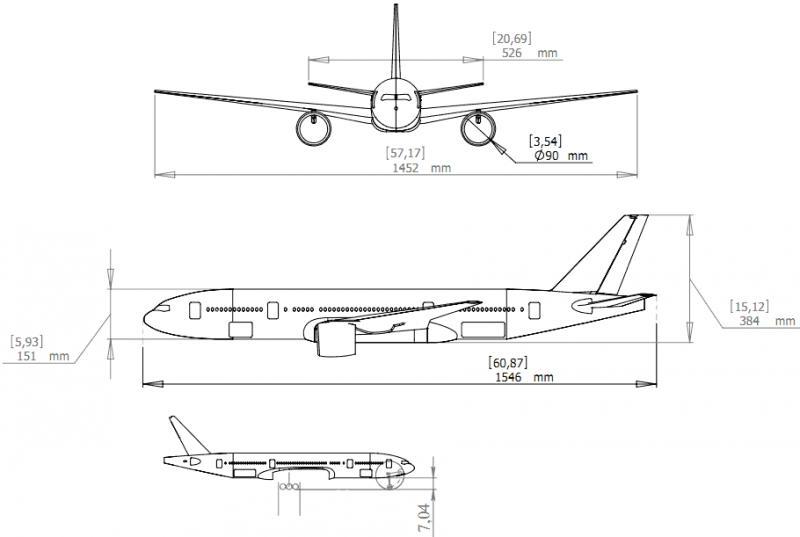Масштаб самолета примерно 1:44 (пассажирский лайнер 1.5м на 1.5м).