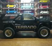 Ну и в продолжении данной темы - ещё одна для меня необычная модель, класса трофи, наверное. Киоши с кузовом Ниссан Пайнтфайндер, хотя на бортах наклейки Террано. К сожалению, в мануале все на японском, поэтому модель телеги сходу определить затруднительно. Уповаю на помощь винтажных дядек).