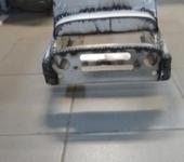 Несколько фото процесса изготовления: установка двигателя с кпп, соединение с задним мостом, работы по кузову, изготовление задних тормозов.
