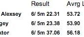 Korabel’nikov Alexsey хххх - 6/ 5m 38.26 - 6/ 5m 22.31