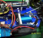 Опробовал новый проект: Без затрат - получить конверсию багги 1:8 “kyosho MP7.5”, (использовал непонравившуюся на 1:10 шоссе б.к. систему), первый вывод - для реального спорта слабовата, но подурить по снегу и в спортзале ничего себе так… . В общем - снаряд получился довольно бодренький.
