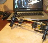 Следующая задача - сервопривод и крепление колёс. Сразу скажу, на это у меня ушло много времени… Фото ниже дают представление о фронте работ: