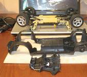 После полной разборки и сортировки (пригодится в будущем или нет) получаем нижнюю часть шасси (платформу), колёса, верхнюю часть - кузов, остекление и элементы салона. Убираем всё в сторону кроме платформы - она нам потребуется для прикидок по правильности хода работ.
