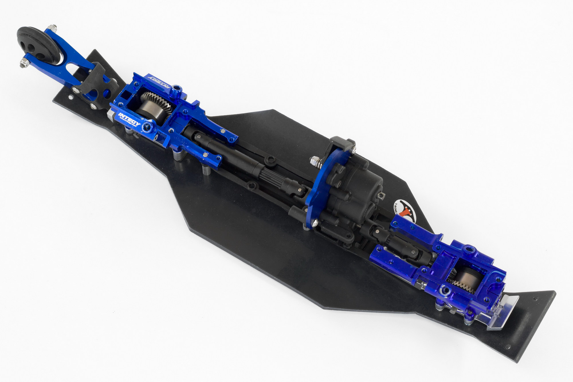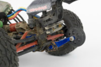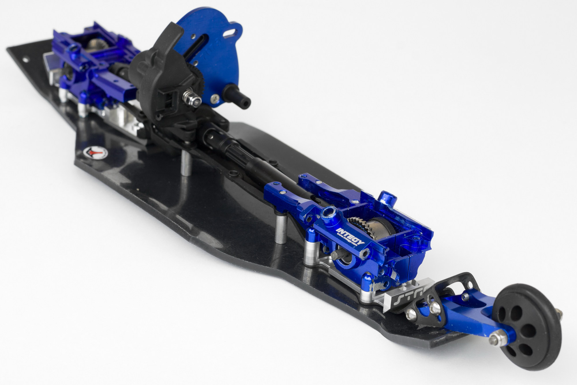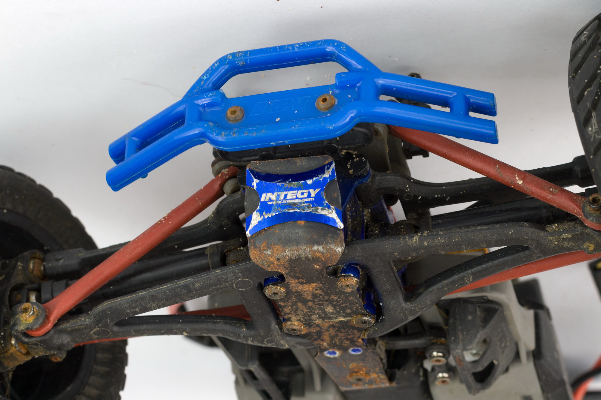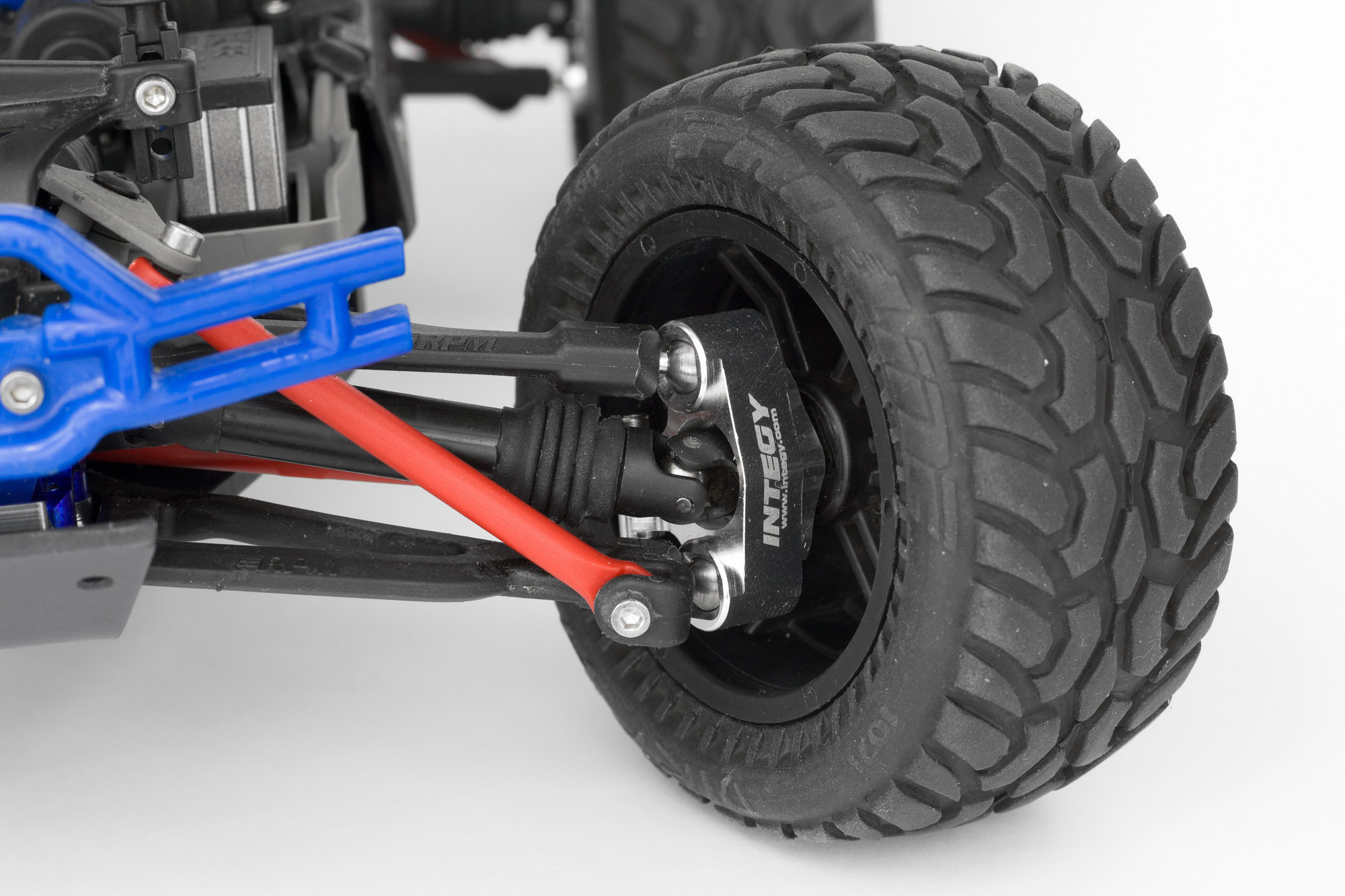 причем оказалось, что синие GH, которые прислали вместе с машинкой, имеют меньший вырез под шаровую, чем Integy. и шаровая просто упирается в них и не дает сильно поворачиваться колесам.