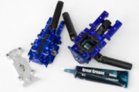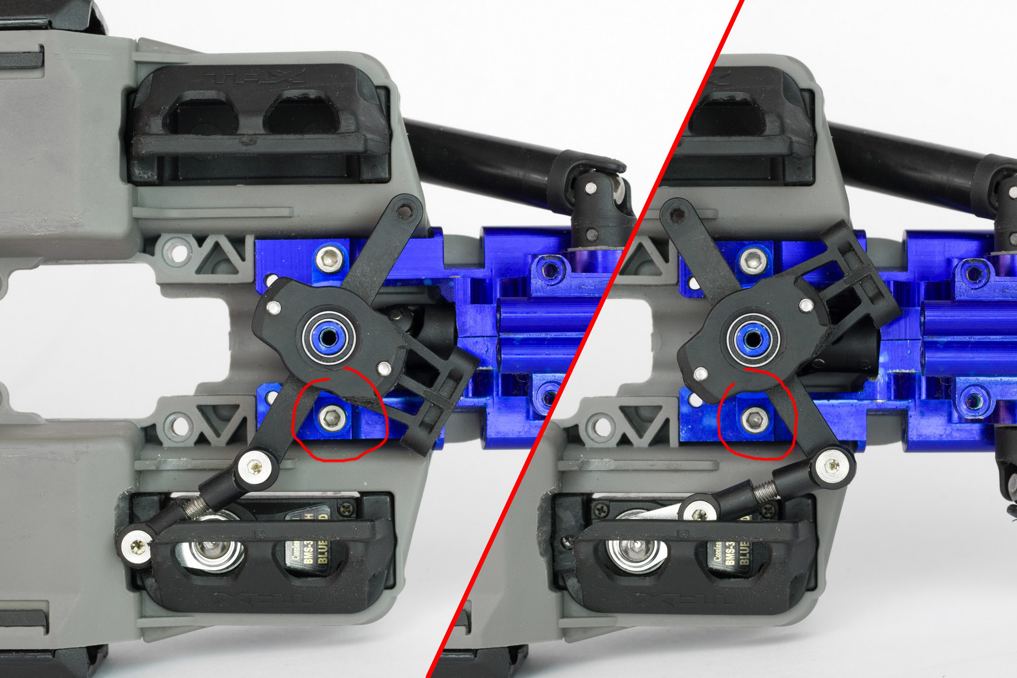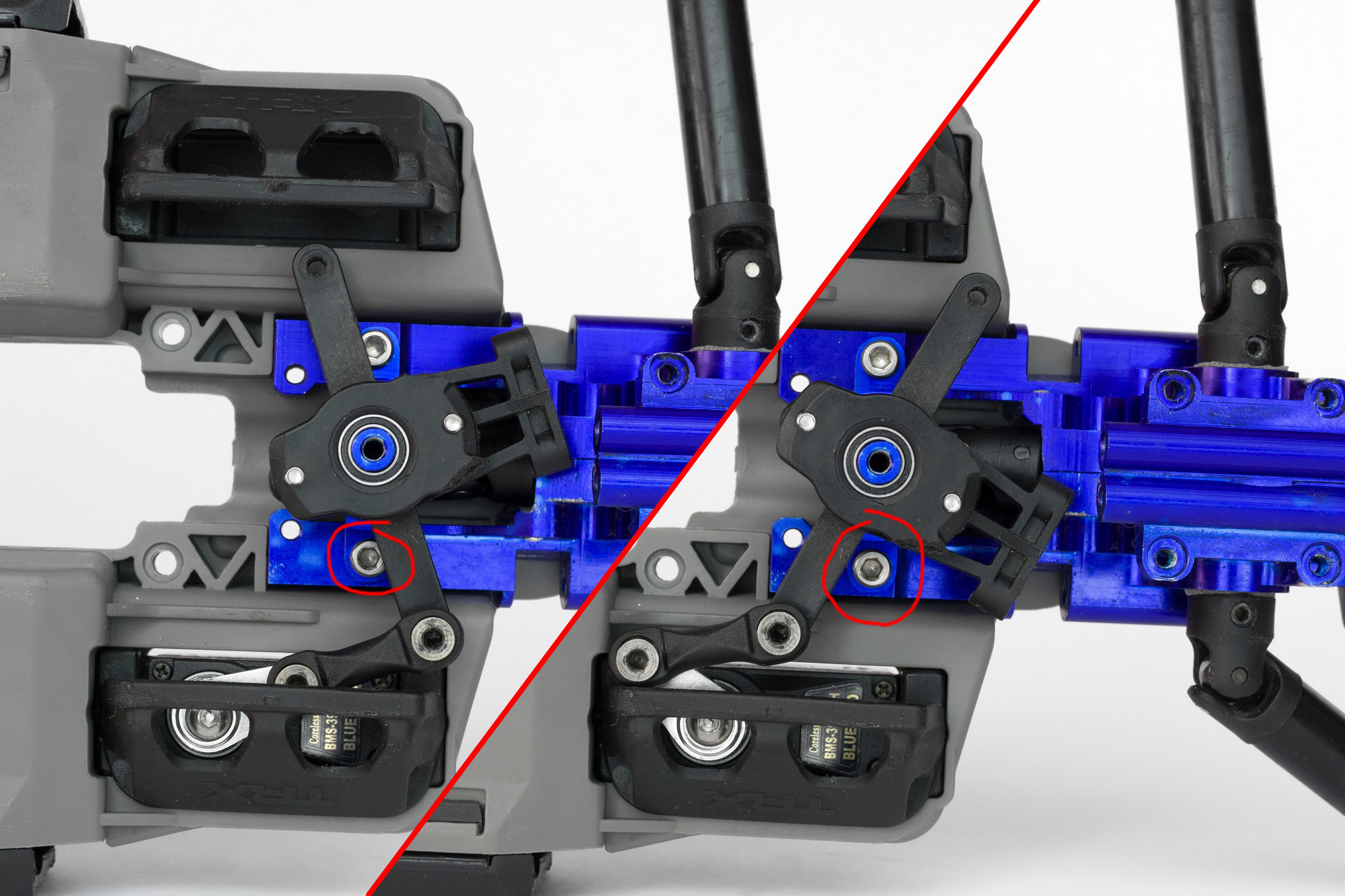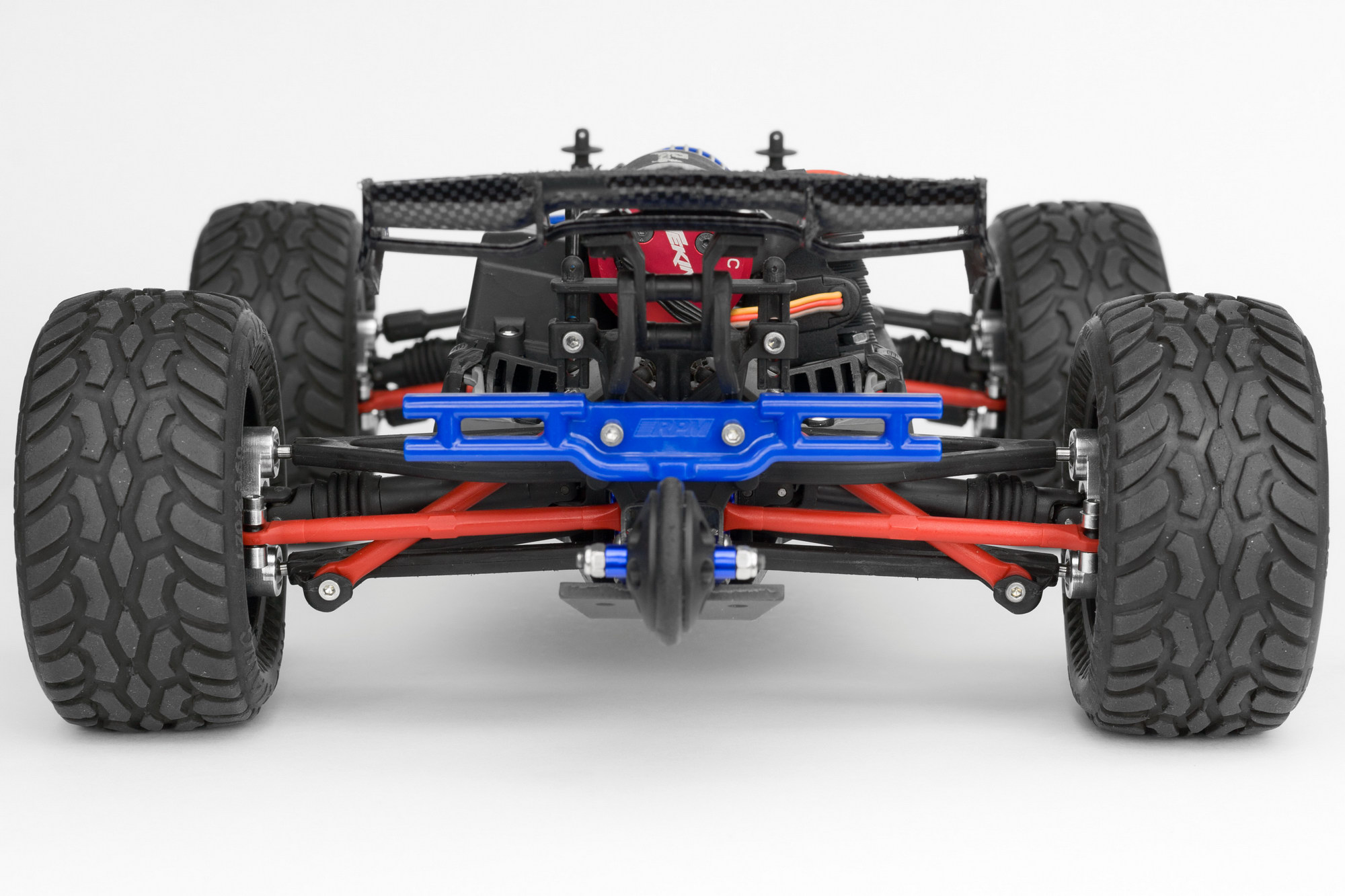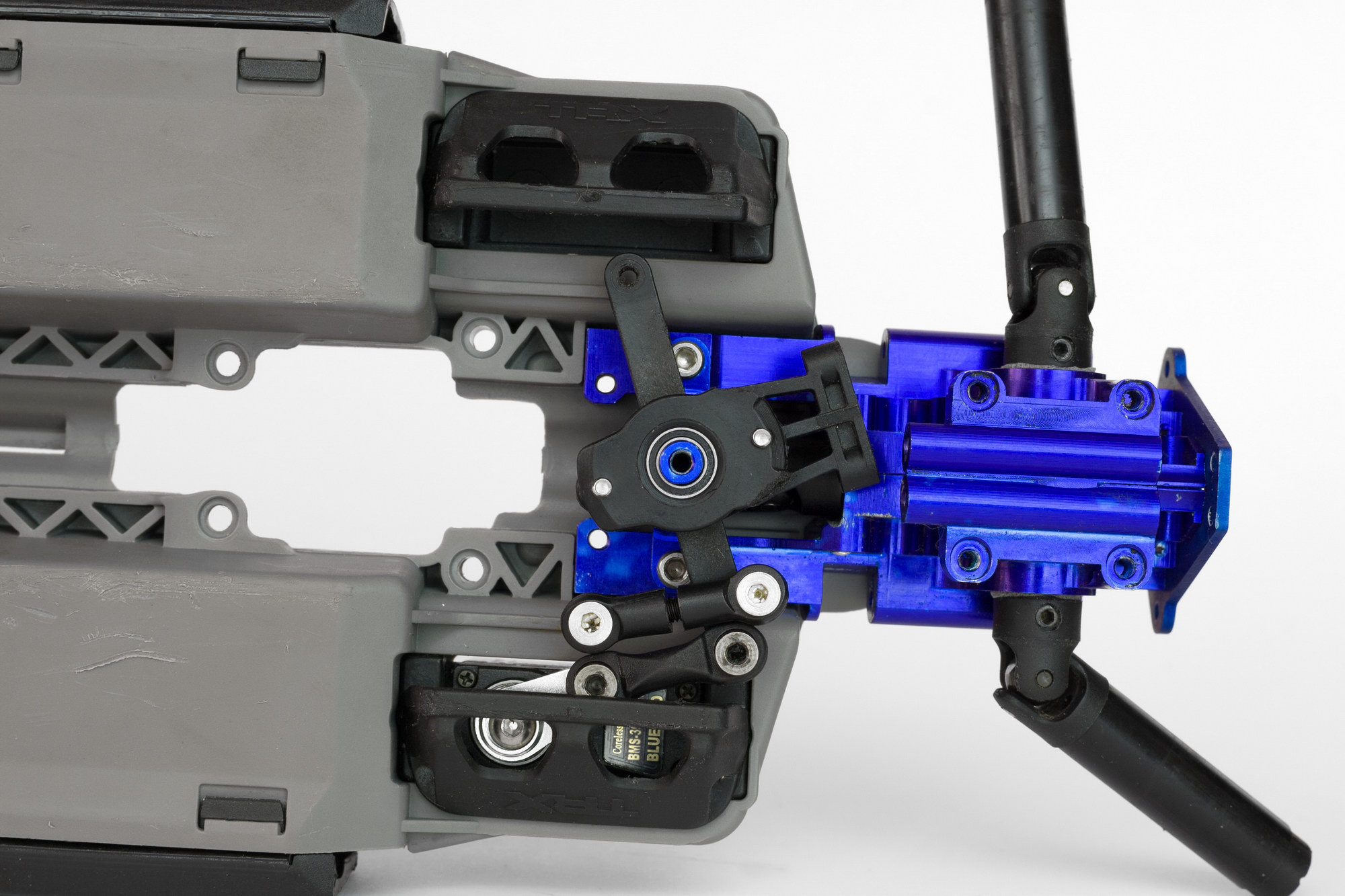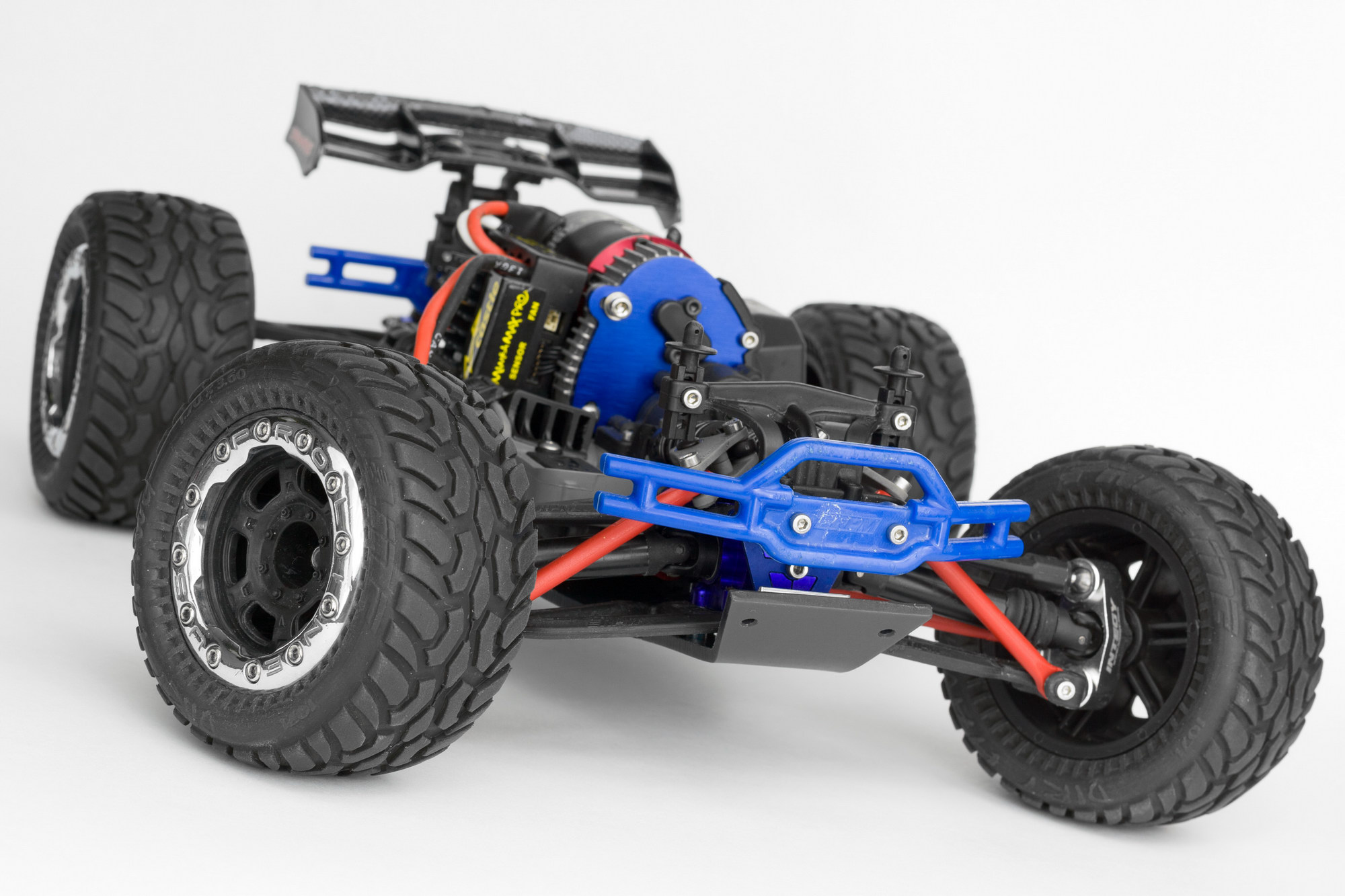 причем оказалось, что синие GH, которые прислали вместе с машинкой, имеют меньший вырез под шаровую, чем Integy. и шаровая просто упирается в них и не дает сильно поворачиваться колесам.