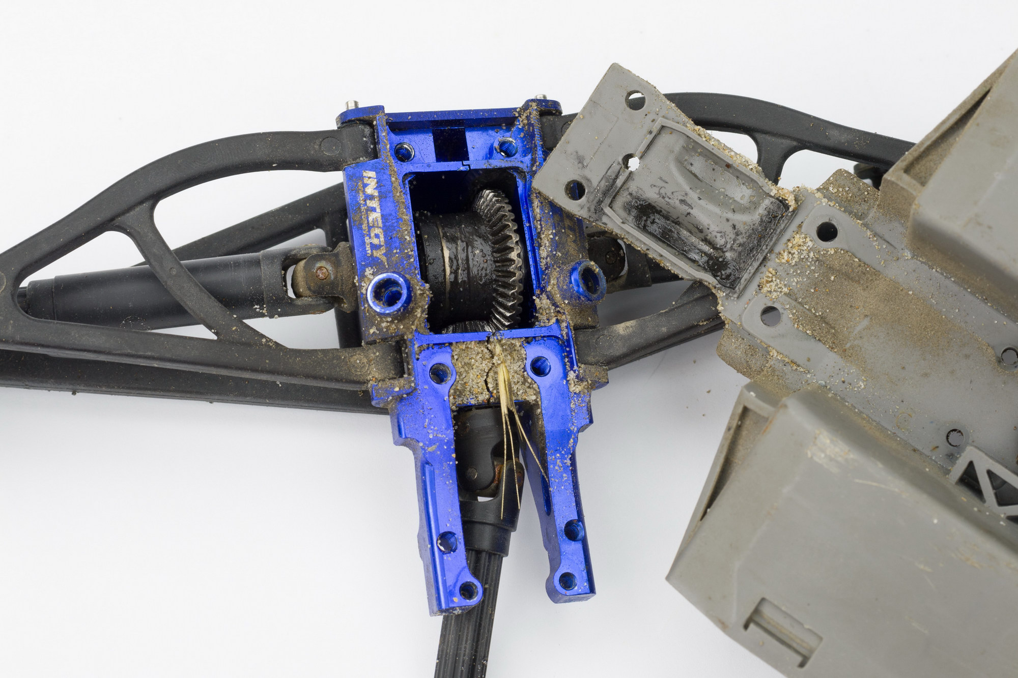потом смазал шестерни и еще раз герметиком со стороны нижних защит и шасси с верху.
