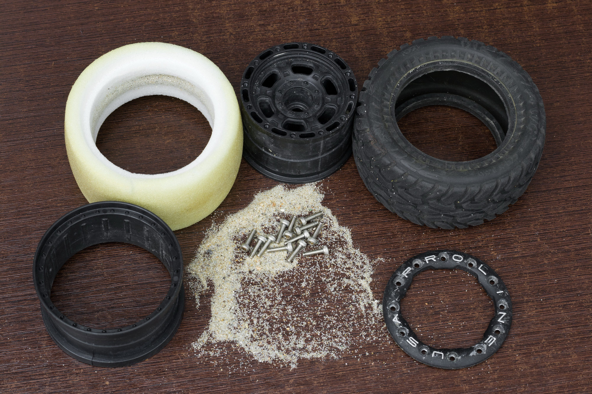 внутри колес было полно песка.