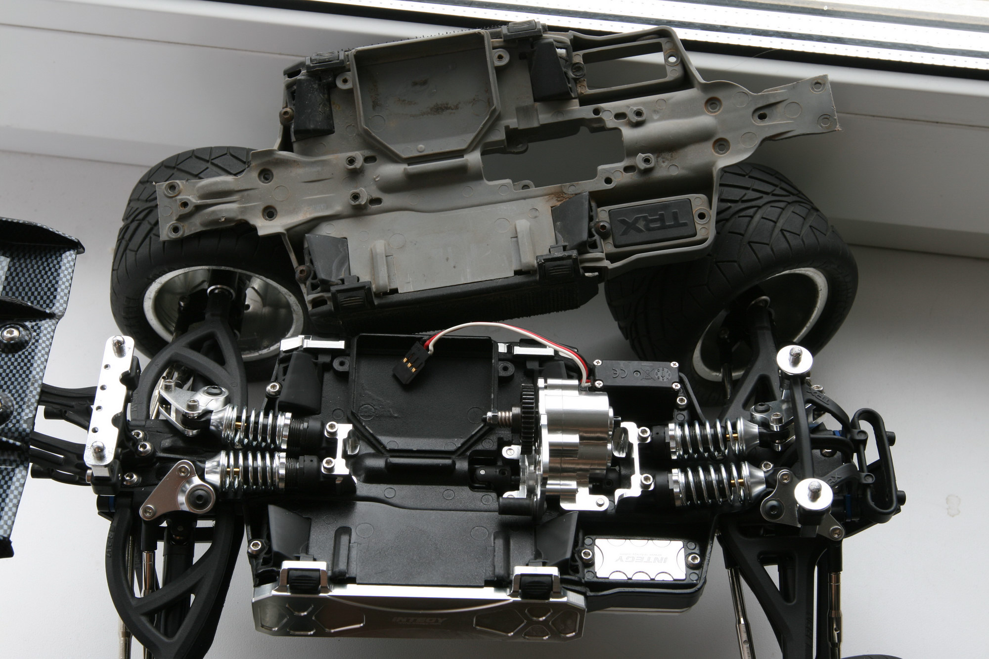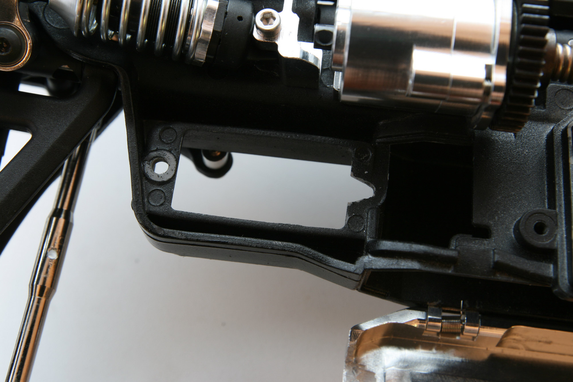 скорей всего. чем жестче становится связь между движком и колесами, тем выше шанс, что съест шестерню там где проще всего это сделать. двигатель-редуктор там все жестко, никуда сдвинуться не может, а вот на дифференциалах слабое звено 2 половинки bulkhead’ов, которые при усилии легко раздвинуть немного - этого достаточно чтоб между дифом и пинионом расстояние увеличилось немного и по краю начало есть шестерню. кстати какое оно изначально это расстояние? если подвигать дифф в лево-право и есть люфт заметный, то делают так называемый shim diff - подкладывают шайбу подходящего размера между дифференциалом и подшипником в bulkhead’е.