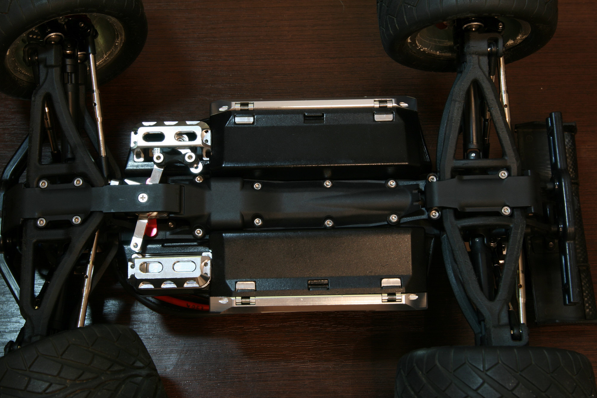 Вчера сынишка покатал минут 20 и снова затрещал задний дифф. Еще не разбирал, но появились подозрения. Чтобы диф был по жестче (много по гравию катаю и по большим камешкам) залил масло густое (100К) 30 и 50 пробовал, на больших камнях тяжело, колеса на оси легко проскальзывают (одно крутится, второе стоит). После того как залил 100 кататься стало в кайф. прокручивает только на маленькой скорости, чуть даш газ и второе колесо подхватывает - стал реально везделазом 😃. Но после пары покатушек начал трещать задний дифф. Думал что просто время пришло. Недавно перебрал и новые шестеренки воткнул. И опять пару покатушек и трещит задний дифф. Думается мне что это 100к виновато, слишком большая нагрузка на дифф. Если раньше одно колесо начинало проворачиваться и нагрузка на дифф падала, то сейчас вся нагрузка на внешние шестеренки дифа. Так что 100к это, наверное, перебор 😦. Как время появится - разбиру и посмотрю что там, но думаю ничего оптимистичного там не увижу… Придется менять шестеренки и заливать 30К, а жаль.