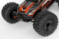 могильщик 1/16 это та же рева вроде, но хексы есть только на задних колёсах, т.к. он заднеприводный. Протектор у его колёс совсем не глубокий и края протектора закруглённые, значит зацеп будет не лучше каньёнов.