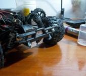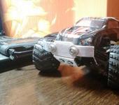 Машинка БК, вот тоже сделал охлаждение мотора, кулер 5В, 25*25мм, приклеил болты эпоксидной смолой к радиатору, радиатор через термопасту к мотору капнул пару капель момента, передний и задний бампера и свет