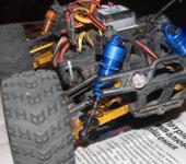 Извиняюсь что опять я влезаю с запчастями от мини ревки, но вчера понадобились аморты для проекта прицепа троффи, пришлось снять с химоты задние. Немного покумекав сделал переходную пластину на заднюю бабочку и вкорячил на химоту аморты с ревы. Ход конечно уменьшился, да и пружины не для нее (чересчур жесткие), но как вариант экстренной замены когда ничего нет покатит.