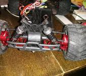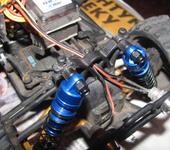 Извиняюсь что опять я влезаю с запчастями от мини ревки, но вчера понадобились аморты для проекта прицепа троффи, пришлось снять с химоты задние. Немного покумекав сделал переходную пластину на заднюю бабочку и вкорячил на химоту аморты с ревы. Ход конечно уменьшился, да и пружины не для нее (чересчур жесткие), но как вариант экстренной замены когда ничего нет покатит.
