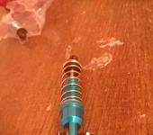Соответственно штатный винт от родных амортов вообще не подходит никак, т.к. он толстый и короткий. Если его пихать с пластиковой вставкой - он не лезет, если без нее, проваливается.