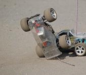 У меня дважды откручивалось колесо, в остальном без потерь, знакомец от знакомства с бордюром потерял очередной рычаг с кулаком. Вообще мне кажется, что при заказе ДураТраха оптимальный комплект запчастей - енто штучек 20 (пять комплектов) верхних рычагов и кулаков, один комплект нижних рычагов, а дальше от самого МиниКвака мало что останется. Пытался при комнатной температуре поломать уже сломанный кулак для опыта - он Гнётся - но не ломается. Так что летом пластик ДураТрахов должен быть более прочен, а зимой наверное более хрупок. На одной из фоток - неудачная попытка переехать моим миниквакой дуратрах моего знакомца - я перевернулся. А бывало что переезжал, немного наискосок если. Надо ещё на видео заморочиться как-нибудь.