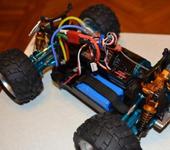 Хотя я пошёл дальше поменял и серву, поставил с метал редуктором с усилием на 3.5кг мотор с регулятором, а ещё и гироскоп что б машинка не рыскала на скорости и колёса баггийные в диаметре 90мм от 10ого масштаба 😃