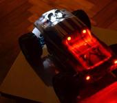 Отлично смотрится! Мощно! А я свет по другому приколхозил. Изнутри по форме фар наклеил молярный скотч и растворителем протёр. Получилось прозрачно по форме фар (и спереди и сзади). Вперёд поставил по одному светодиоду с ленты и заделал герметиком, назад обычные красные светодиоды. Пофоткаю, выложу. Только корпус у меня уже сильно пострадал, дочка гоняла…