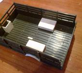 Продолжая про модернизацию. На грузовой платформе, снизу, продольные рёбра, я срезал их примерно на половину по высоте. В бортах сделал полукруглые вырезы как у классической Шишиги. На фото видны колёсные ниши и спереди кабельный колодец.