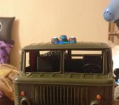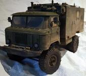 перекрасил модель из синей KIT модель ) как по мне получилось не плохо , всё разобрал , раму заматовал шкуркой что бы краска не слетала , раму , диски , бампер , фары , баки покрасил обычной чёрной краской из балона матовой , а кузов сначала покрыл автомобильным грунтом из балона а потом зеленой акриловой художественной краской ( водоэмульсионка ) , надеюсь отпадать не будет , пробовал намочить и оттереть тоже не выходит ) осталось купить оранжевую краску покрасить поворотники , и придумать стекла с тентом ) и как придёт вся аппаратура , модель будет готова )