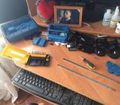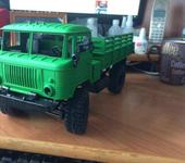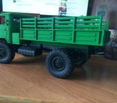 перекрасил модель из синей KIT модель ) как по мне получилось не плохо , всё разобрал , раму заматовал шкуркой что бы краска не слетала , раму , диски , бампер , фары , баки покрасил обычной чёрной краской из балона матовой , а кузов сначала покрыл автомобильным грунтом из балона а потом зеленой акриловой художественной краской ( водоэмульсионка ) , надеюсь отпадать не будет , пробовал намочить и оттереть тоже не выходит ) осталось купить оранжевую краску покрасить поворотники , и придумать стекла с тентом ) и как придёт вся аппаратура , модель будет готова )