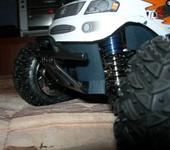Да рычаги я поставил удлиненные,разница меж стоковыми есть, база шире на 1 см становиться.Для моего лося это хорошо т.к. центр тяжести у меня смещен вверх,сеня катал практически не переворачивает устойчивости добавляет.По поводу дисков для большого выноса колеса вот cgi.ebay.com/Losi-LOSB0980-Monster-Wheels-Mini-LST… (не реклама) я думаю с ними можно чего нить добиться,в ближайшее время хочу купить на пробу.По поводу резины у Сергея я так сказать щупал её на его дисках,там резина только жесткая и все.Поэтому он и решил спросить здесь,вся то резина мягкая.По поводу переходника к колесу наверно останется секретом.