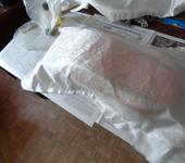 Затем залить всё это хозяйство силикомом который в балончиках,после этого в образовавшуюся форму залить гипс,в итоге у меня получится детализированая матрица на которой можно уже лепить как со стеклоткани так и с пластиковых бутылок.