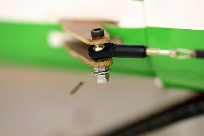 Элеронам надо добавлять ходов. Если вверх это лечится увеличением плечей качалок, то вниз - придется поработать руками. Нижняя передняя поверхность элерона тупо упирается в заднюю кромку крыла. Надо будет упилить миллиметров 5.