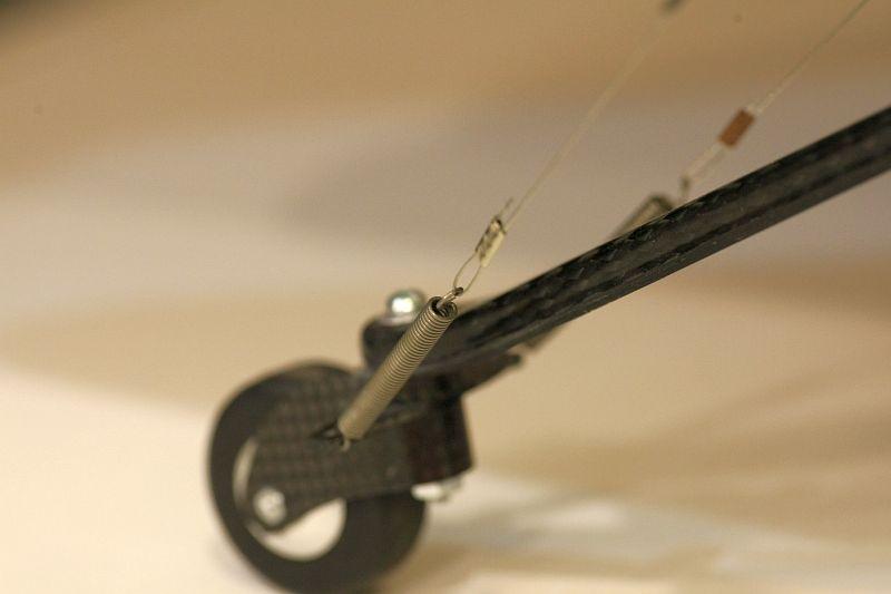 Кавановские колеса с ниппелями подкачки сдулись окончательно после десятка посадок. Ниппеля просто выпали. Поставили колеса из жесткой микропоры. Самолет, обладая жесткими стойками перестал козлить при касании. Просто прилипает к земле. Тормозим подъемом всей задней кромки вверх примерно на 2/3 расхода элеронов. После такого финта остановка происходит метров через пять.