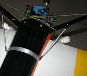 После вклейки рулей прикрутил двигатель, привесил сервы и электронику на предполагаемые места, поставил на стенд центровки. Оказалось, что ценровка на очень много передняя.