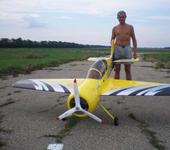 Спасибо за добрые слова! Налетаться в доволь не получается, всю неделю дуют не слабые ветра, может на выходные получится. Летает самолет отлично, расходы установил максимальные, пришлось подтачивать места вклейки петель на всех рулях, теперь удалось достичь отклонение в 45-50 градусов. Экспоненты пока -50%. Расходы и двойные и одинарные, на малых расходах взлетаю и сажаю. Центровку перенес на зад, самолет полетел по другому. Стал боллее чувствительным, но и фигуры получаются более интересные. Пропеллер ставил 27х10 и 28х10 деревянные. Остановился на 27х10. Висит самолет классно, даже подгазовывать почти не приходится. В общем набираюсь навыков пилотирования. Пытался сравнивать полет этого с самолета с его предшественниками но это очень разные полеты, размер имеет значение.