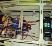 Еще в фюзеляже для стабилизаторов есть небольшое прямоугольное отверстие, между ними вклеил две площадки и теперь провода не болтаются, а лежат как в постельке. 😃