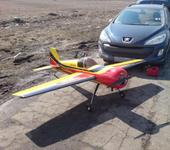 Впечатлений просто через край. Мотор ЭВО-80 с питц, завелся с третьего тычка, покатал пол бака и в небо. Летал в пол газа уходит просто ракетой, дури у мотора через край, блин такого не ожидал. Тримирование нулевое, взлет с пяти метров, посадка тож легкая. На ветер реакции нет.