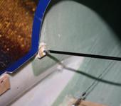 При прямом расположении тросов они терлись об корку фюзеляжа. Тут либо прорезь больше делать, либо качалку уменьшать. Сейчас провисания тросов замечено небыло.