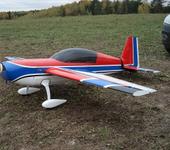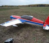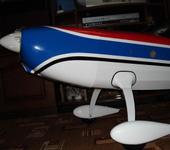 Взвесился наконец:). Сухой вес без “летающей головы” и приборной доски 8080г. топлива на борту 500сс, что соответствует примерно 375г. Итого на взлете 8455г. Не мало… но и не много. Пилот с доской кстати весят 90г. Доску придется видимо ставить, уж больно добротно сделана:). Расчетный задел облегчения составляет около 400г. Но… я этого не хочу, самолёт итак летучий и послушный. Буду “жарить” двигатель. Сегодня поднял повыше, посмотрел чего может… Дааа, водопад, штопор на ноже, роллинг-харриер без проблем, вертится как пенопласт. Штопор кстати победил, надо рулей поменьше давать))). Такого бензиныша у меня еще не было… Шасси крепкие, первые 3 посадки мочил козла добротного:)