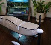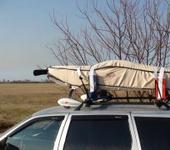 В ожидании летнего сезона занимался модернизацией средств транспортирования. За основу взял конструкцию, которую испоьзовал при перевозке Катаны 2,2. Но она помещалась и в салоне с откинутыми сиденьями. Размер 2,6 уже в салон не войдет. Конструкция получилась универсальной, меняется только вставка под заднюю опору. При необходимости (наличие пассажиров), чехол с крыльями тоже помещается на крыше. Хочу еще сшить чехол-накидку на капот (кабину), чтобы вода не попадала внутрь, если вдруг пойдет дождь.