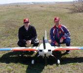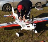 Ну, вот этот день настал. Решил облетать Катану! Погода была ветреная но отступать было поздно. Самолетом очень доволен, тримировать не пришлось совсем,движок суппер! (немцы зер гуд!) На максимальные обороты не выводил, летал с заводскими настройками, максимум выдал 6650 минимум оставил 1500(надо катать) масло Motul 800, Винт 28х10 межлик. Попробовали замерить тягу безменом, показал 24кг, немного разочаровался: Может врет? Но по полету не скажешь что не хватает тяги, Хотелось конечно дать немного нагрузочки и повисеть и плоский штопор, Но понимаю что рано! Вес самолета(14кг + топливо+дым) не чувствуется, отклик на газ хороший, думал будет хуже, посадочная скорость была великовата так как садил с боковиком, да и привыкнуть к самолету нужно. Не обошлось без проишествий, сдохла серва газа после нескольких минут работы, причину пока не знаю, пришлось ехать за запасной, благо была! После нескольких полетов при жесткой мосадке треснула корбоновая стойка шасси, там были четыре родных отверстия для крепления на экстру Aeroworks вот по ним в акурат и трещина(с себя за кривые руки я ответственности не снимаю) придется ставить родную. В общем от первого полета впечатления хорошие!