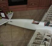 Потихоньку продвигаемся… Установлены все привода , разъёмы через люверсы выведены из консолей, преднатянули плёнку и пресобрали для проверки - что и как у пепелаца стыкуется. Естественно, не обошлось без взвешивания. Получилось около 5700. На одной фотографии консоль прямоугольной формы, первоначальный вариант под неубирающиеся шасси. Они до сих пор не демонтированы. Пока удобства от них больше. Осталось решить, что придумать для капота.