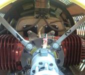 Игорь,модель сделала уже больше десети полетов.Ни одна гайка не отвернулась и ни чего не развалилось.Пишите Все ,что вам снять и как.В дебаты вступать не буду.Я на бензине летаю очень давно и перепробовал столько вариантов,что знаю какой узел и когда и как развалиться.С 1900года ни одна моя модель не летает без виброопор,а с 2000г и без передней поддержки.Но пока фото по теме.