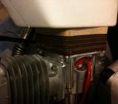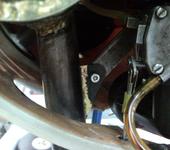 Обратите внимание,как закреплены глушителя.(на фото спереди 16 пост)К выхлопным трубкам припаяны косынки(латунью).От них идут полосы- косынки.От правого глушителя под левый нижний болт крепления двигателя,а от левого глушителя под правый нижний болт крепления двигателя.Эти косынки имеют форму уголка. Без них пламя гасители долго не живут(из практики).А с ними получаеться два не зависимых треугольника жесткости ,которые не позволяют глушителям жить своей жизнью.Если буду снимать мотор,то сделаю фото мотора сзади для наглядности этого мамента