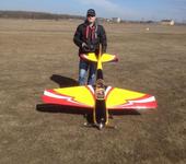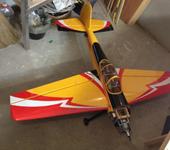 ЯК 55 30cc от GW, мотор OS GT33, серво хайтек 5685 7,4в. по кругу, сразу усилил переднюю стойку и поменял навесы, усилит мотораму так как в мастерской прохладно вклеивать навесы забрал в квартиру, что бы не резать сильно капот глушитель придется ставить от DLE 30.